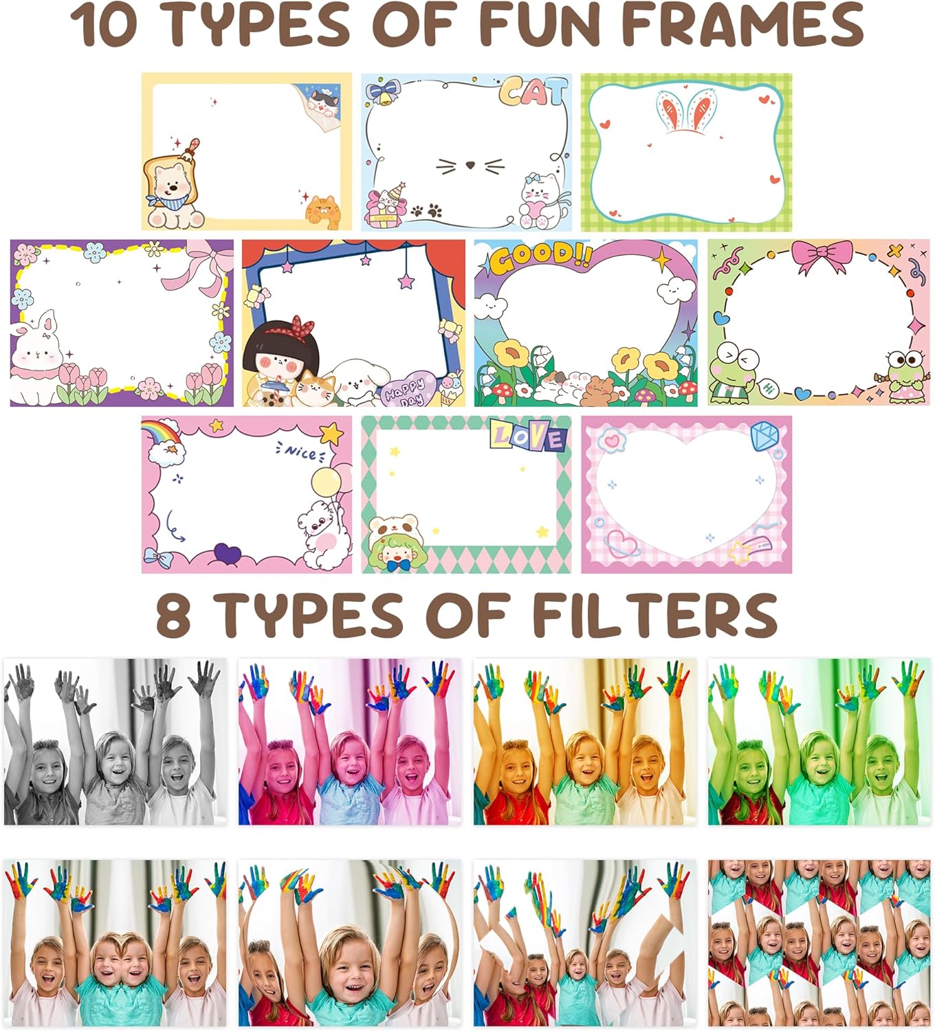 ✨ Creative Editing Tools for Kids : Spark imagination with 10 frames, 8 filters, 3 effects, and drawing tools! This toddler camera lets kids design stickers, doodle on prints, and explore their artistic side—making every photo a unique creation.
